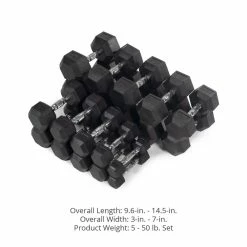 5 LB – 50 LB Pairs Rubber Hex Dumbbells