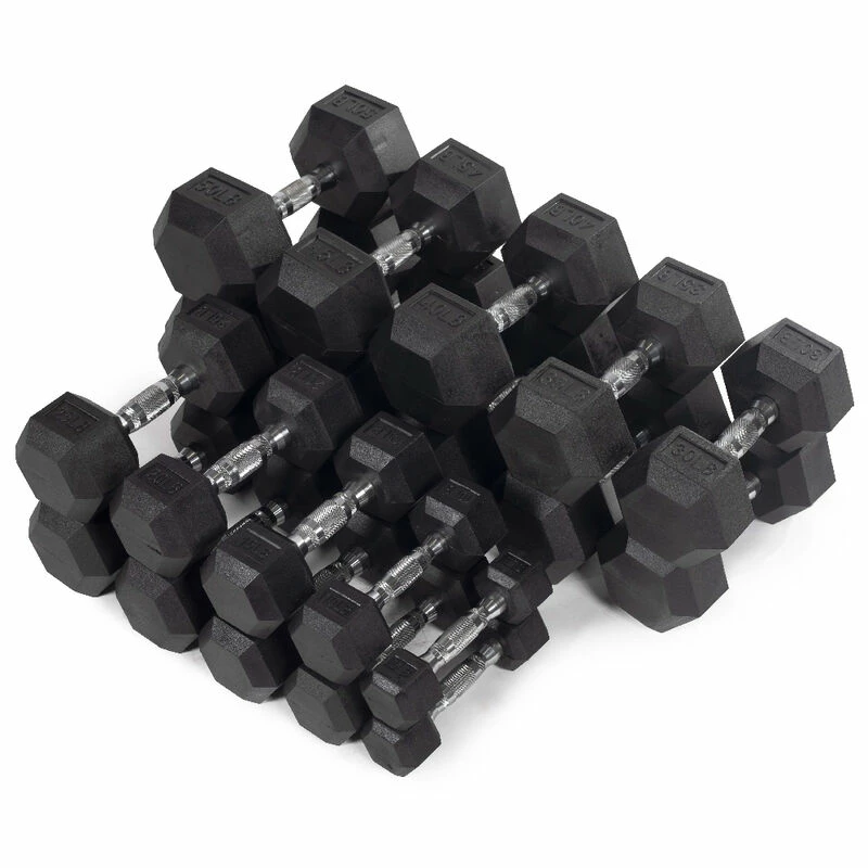 5 LB – 50 LB Pairs Rubber Hex Dumbbells