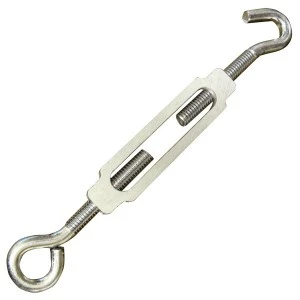 This extra long 10 1/2″ long turnbuckle features approximately 6″ of uptake. Designed for use with the 1/4″ diameter cable to take the slack out of runs of cable. One end offers a hook for attaching to the eyebolt and the other end features an eyelet for cable attachment. For runs of cable longer than 60′, it is recommended to use a turnbuckle on each end.