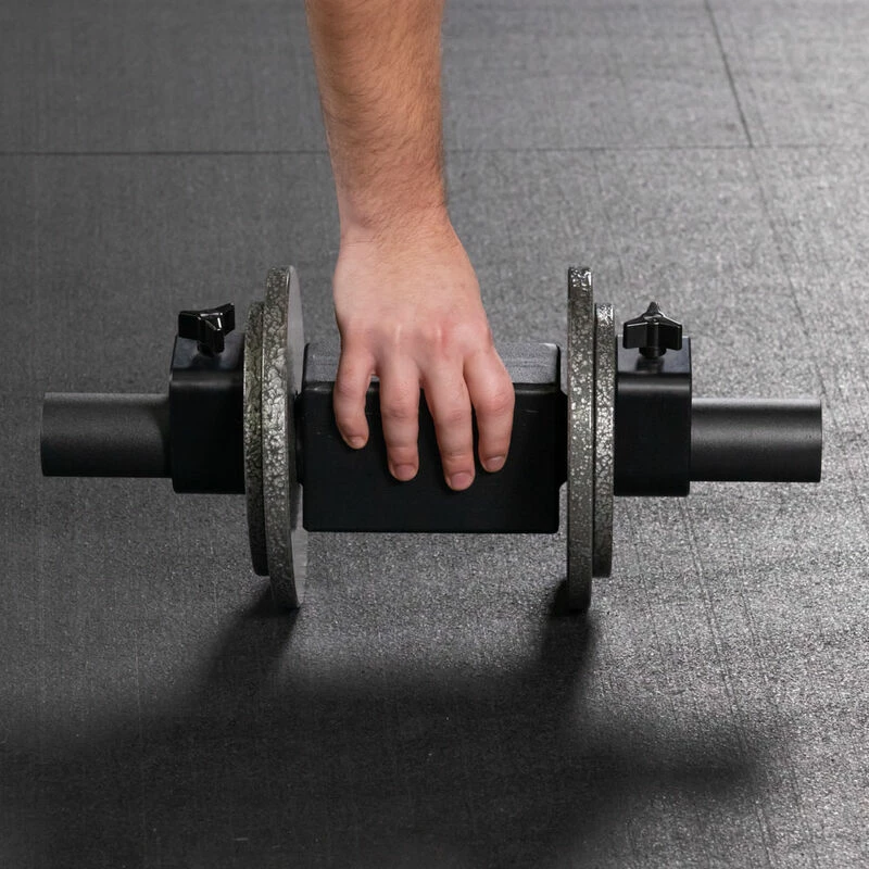 Unleash your inner Titan with the Loadable Beam Dumbbell Handles, part of our exclusive adjustable dumbbell selection for space efficiency. These dumbbell handles are constructed from high-quality rust-resistant steel with a smooth powder-coated finish. The block handles are made to build grip and pinch strength while performing dumbbell movements. Featuring a 2.5″ x 4″ beam, they are the perfect size for a comfortable but demanding grip that will test your forearm strength. Quickly load up the Olympic-sized weight sleeves with bumper or steel plates and incorporate the handles while performing lunges and squats in your fitness routine to target your hamstrings, quads, and glutes.