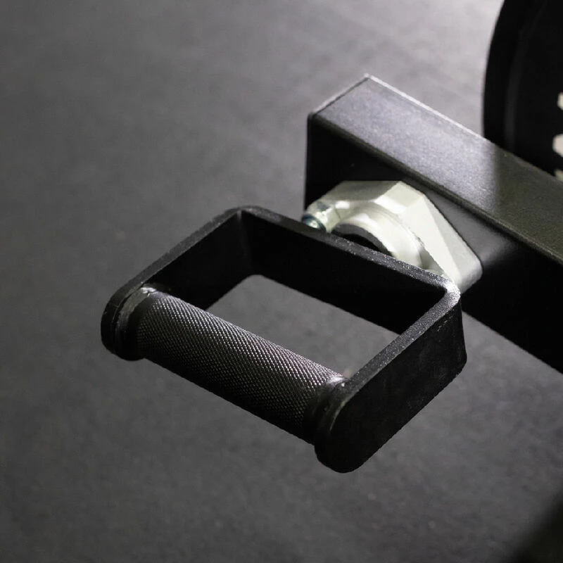 Increase your training with the innovative walk-through Clean N Jerk Landmine Attachment that will allow for a wide range of movements such as lunges and carries. This high-quality landmine trap bar attachment easily attaches to any Olympic bar with a painless slide-over design. It allows quick installation and prevents wear and scratching on your barbell. The threaded stop pin will keep the barbell in place as you train and works great for any landmine training. The attachment is made from 2 x 2.75-inch, 11-gauge steel tubing featuring two weight post sleeves and knurled handles that rotate 360-degrees. Take your workout to the next level by performing deadlifts to overhead presses without changing your grip as the handles rotate with you as you lift.