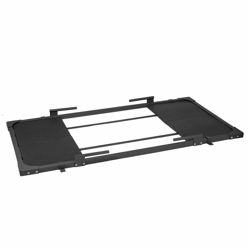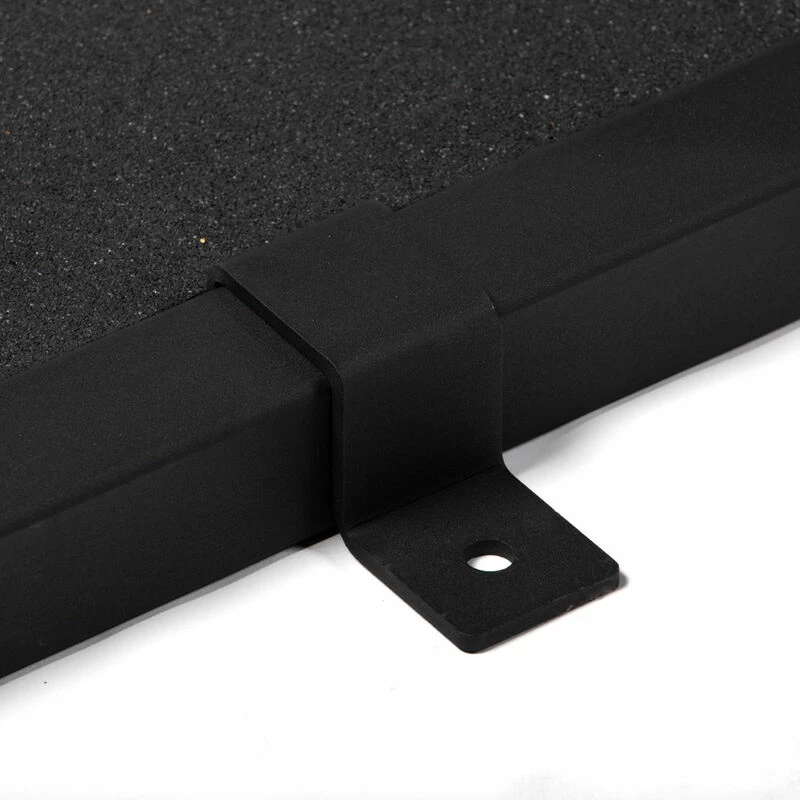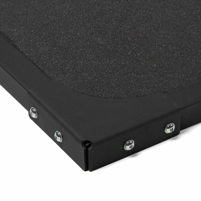 The Deadlift Platform Frame offers a designated spot for the highest-level performance in reaching a new deadlift or snatch weight PR. Built as an 8′ x 4′ bolt-together 2″ x 2″ 11-gauge steel structure that gives a competitive feel that will protect your weight plates, floor, and dampens the sound of your lifting. The platform comes with long band pegs to increase vertical jump, bar speed, athleticism and a set of floor clips to secure the platform to the ground, primarily if you use the band pegs. This Platform Frame is the perfect equipment for strength training and is available in three options when ordering: Frame Only, Frame with 4 Rubber Tiles, and Frame with 8 Rubber Tiles.