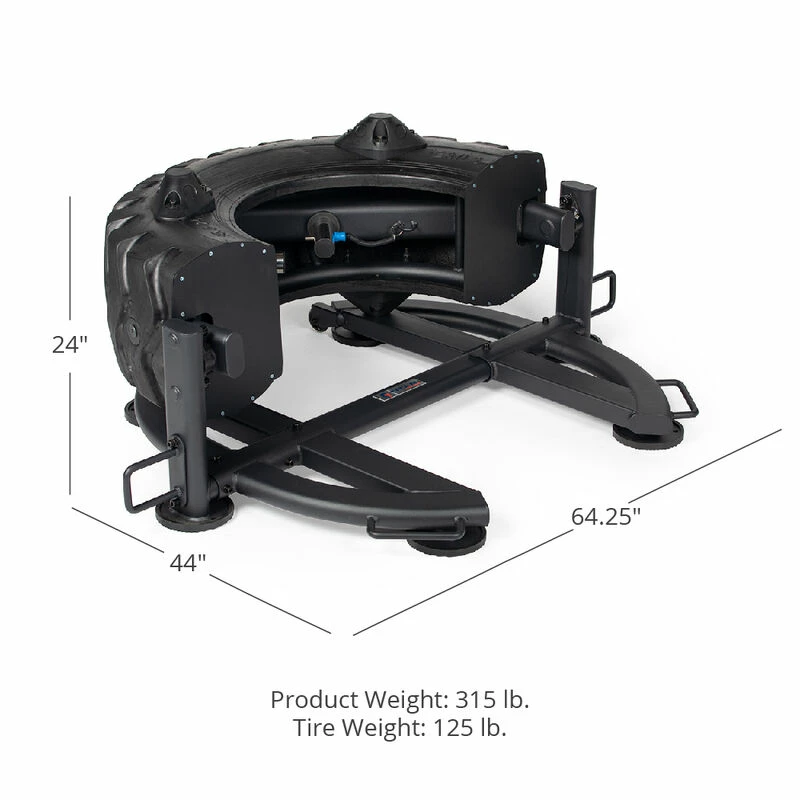 The Indoor Tire Flipping Machine is constructed for the highest level of tire training performance while remaining compact for home gym or studio training. With a starting weight of 125 LB and plate loadable up to 185 LB, this compact machine packs a bunch. The walk-in open-frame design lets you step into each tire flip for a natural movement. With dual battle rope anchor points, this machine is perfect for individual or group training sessions.