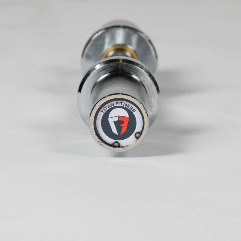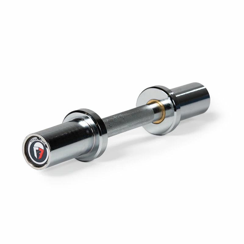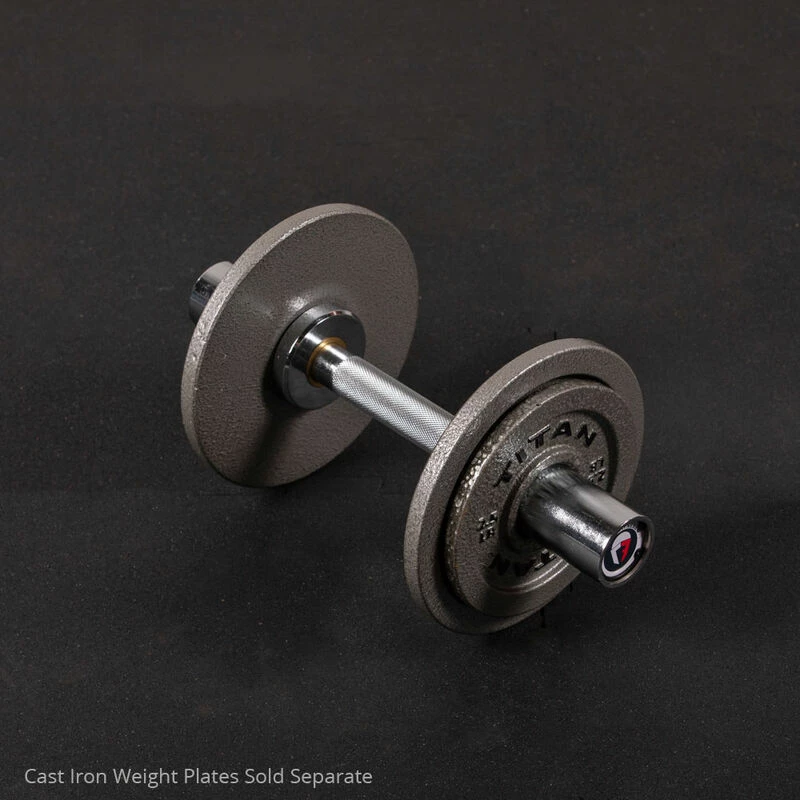 Unleash your inner Titan with the Loadable Dumbbell Handle, part of our exclusive adjustable dumbbell selection for space efficiency. This commercial-grade dumbbell handle was inspired by Olympic barbells featuring a loadable sleeve length of 3.75-inches. All versions of the Olympic Dumbbell Handle are constructed from high-quality rust-resistant steel with medium diamond textured knurling and bronze bushings. Incorporate the handles while performing lunges and squats in your fitness routine to target your hamstrings, quads, and glutes. You can even target your obliques by doing side bends and twists. They truly offer a total body workout.