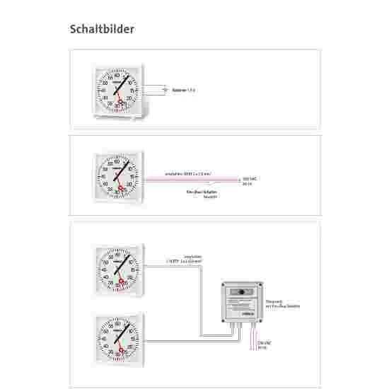 Can also be used as a wall-mounted master clock. Friction controlled 24V for (fixed) connection to a central control unit. Recommended for synchronising parallel timing of two training clocks (at a fixed location). Delivery includes a 3-point cable fixing safeguard. A control system is necessary for operation and is available on request.