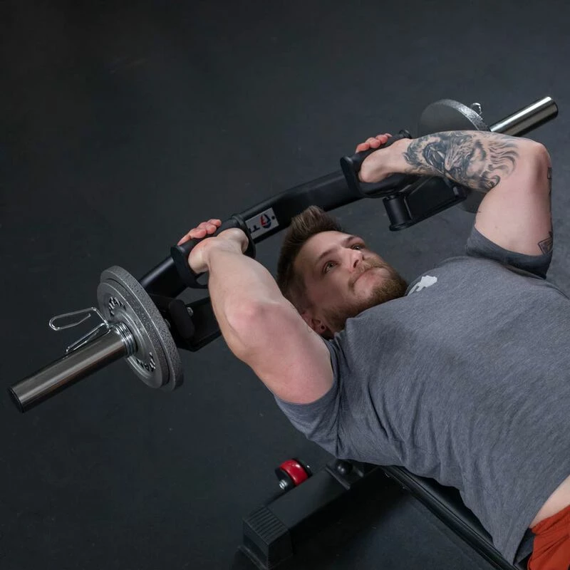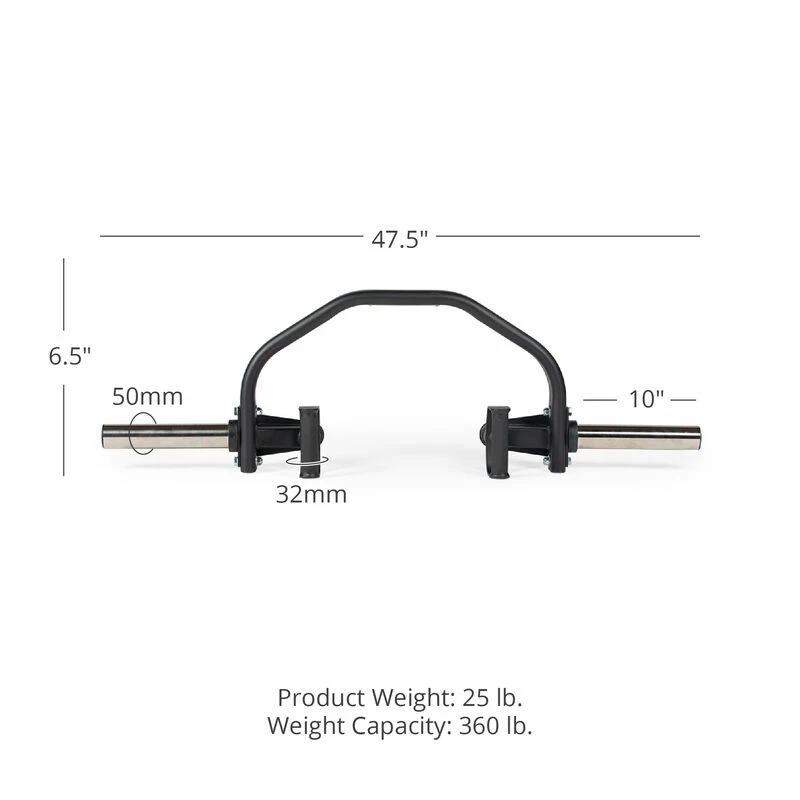 The Pivoting Triceps Bar, created to reduce stress on your elbows, is constructed for the highest-level performance in training a variety of presses and curls. Crafted with an open-ended frame that features swivel knurled handles and Olympic-sized weight sleeves. The bars rotating handles provide a complete contraction of the lateral head of the triceps, as well as minimize the stress on the elbows that often comes with this exercise. The handles revolve on twin roller bearings, providing a smooth rotation no matter how much weight you have on the bar. Made to support a weight capacity of up to 360 LB, this Triceps Bar allows for a versatile range of movements in weighted lunges, squats, standing bicep curls, and more while maintaining balance for overhead presses and shrugs.