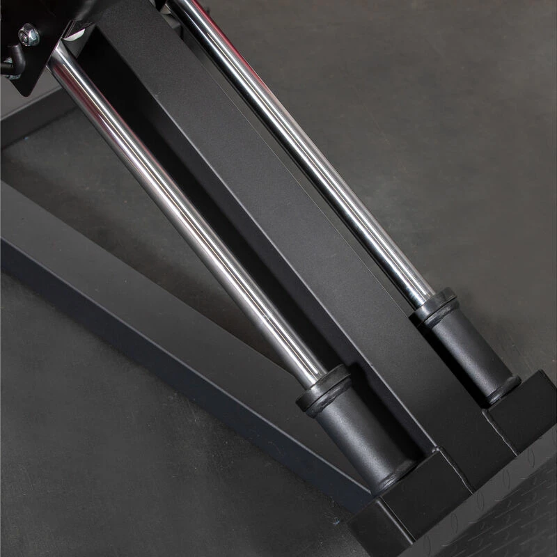 The Plate-Loaded Linear Hack Squat Machine is our dedicated Hack Squat Machine. Great for lower body strength, this machine allows you to perform a weight-bearing squat movement at a 35-degree angle. Featuring a weight carriage that travels on commercial linear bearings and steel alloy guide rods, a large diamond-plated footplate, and dual 9.75″ long weight sleeves that fit Olympic-style plates. Designed to accommodate athletes of all sizes, this machine will push your lower muscular endurance.