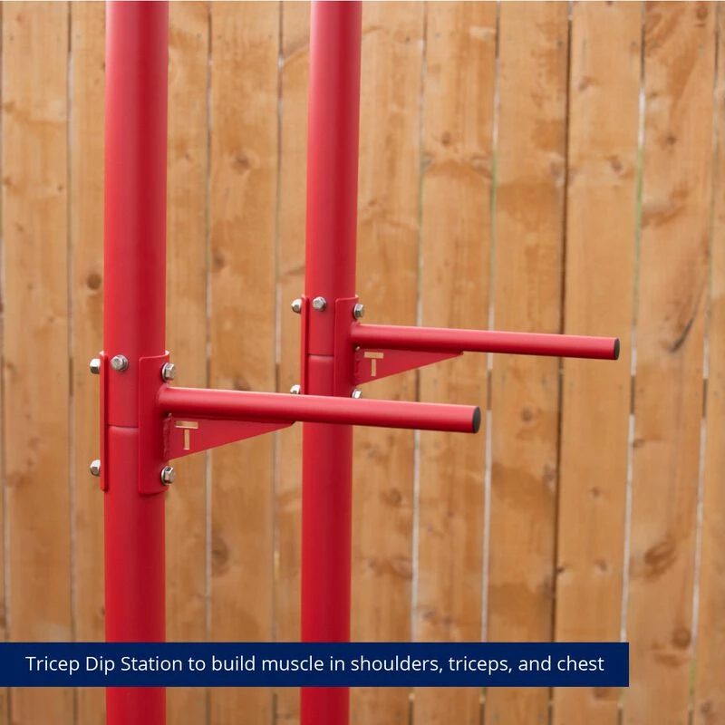 Take your workout outside with the Outdoor Power Tower! Featuring four workout stations to develop the muscles in your chest, abs, shoulders, and biceps. Made from heavy-duty steel, stainless hardware, and a thick powder-coated blue finish to ensure a weather-resistant and lasting design.