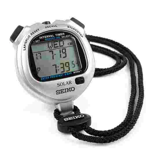 The Seiko “S062” solar stopwatch is excellent for use in interval training and competitions β whether for running, swimming, downhill races, cross-country skiing or in motorsport. This stopwatch comes equipped with 2 displays, which clearly show your training data. The easy-button function allows saved data to be displayed after and even during measuring. An integrated battery display shows you the current battery status.