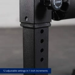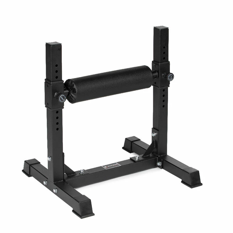 While utilizing this stand-alone Single-Leg Squat Roller, you can perform various exercises more efficiently and comfortably. By placing the crease of your ankle on the roller pad, you will get a better range of motion while carrying out loaded movements with kettlebells, dumbbells, sandbags, or a weighted vest. Built to perform Bulgarian split squats, this bolt-together lower body specialty machine includes gussets to enhance the structural support and features an adjustable roller pad for added comfort and stability. The squat stand quickly adjusts in 12 positions within 1-inch increments, and it comes equipped with rubber feet to prevent movement while in use. The Single-Leg Squat Roller forces intense muscle work on the weight-bearing leg and focuses not only on the quads, hamstrings, and glutes but the core as well.