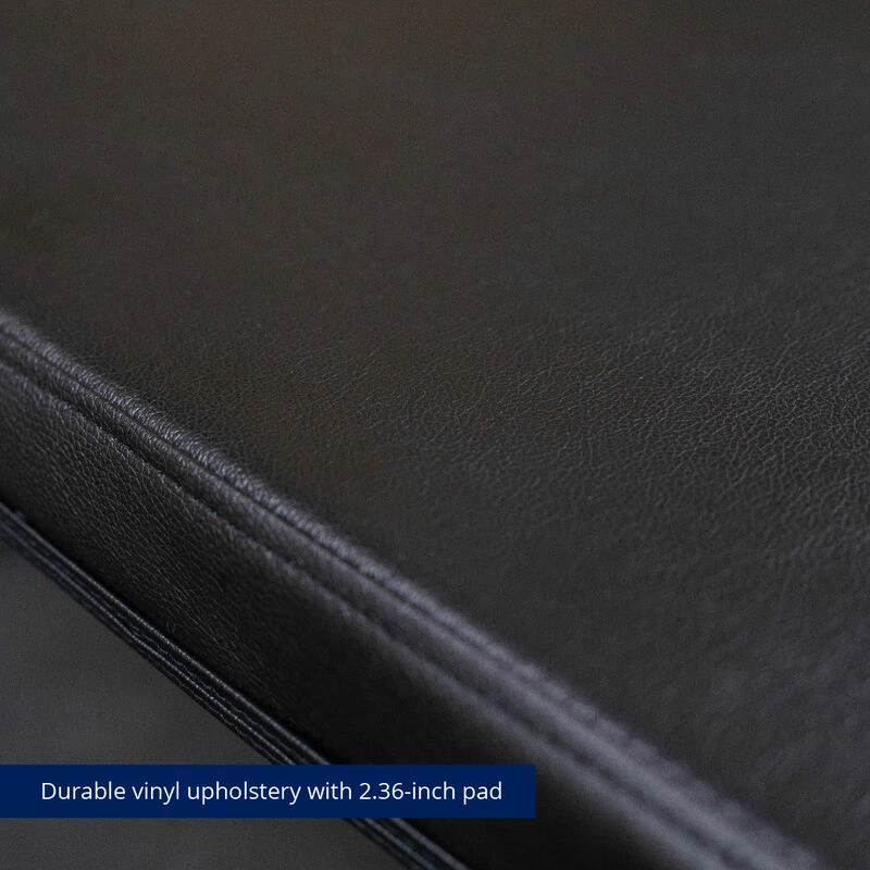 The Single Post Competition Flat Bench is designed to give athletes more room for setting their feet during a bench press. The stable tripod base is easy to level providing a set of rubber feet to further assist in floor protection and preventing movement. Featuring a thick pad, a front handle, and rear wheels for easy transport; when not in use, the competition bench can be stored upright for better space efficiency. Perform a wide variety of exercises, including bench presses, pullovers, rows, triceps extensions, and curls. This Competition Flat Bench is everything you will want in a bench.