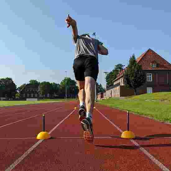 Unique magnetic timing technology for professional performance diagnostics at any location. With free app to view livestream timing on your smartphone. Great tool for short-, medium- and long-distance runs, hurdles and relays, but also for pole vault and long jump. This is how it works: put on the belt with the sensor electronics and run through the gates. These can be set up with a minimum distance of 5 metres. The data recorded by the sensor can be viewed in real time on your smartphone or another online device. Use 2 gates for runs without split times and 4 gates for runs with split times. Packed dimensions (LxWxH): 43.7×37.9×13/16 cm. Approx. 8/12 kg.