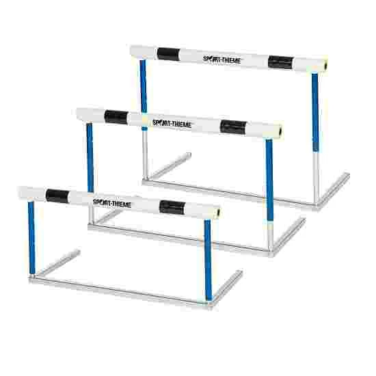 Hurdle for childrenβs athletics events. Easy height adjustment thanks to push-button system. Adjustable heights: 40, 50 and 60 cm. Padded crossbar for increased safety. Compact storage thanks to removable base. 40x80x60/50/40Β cm. Approx. 4.4Β kg. Silver, black, white and blue.