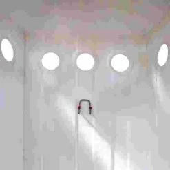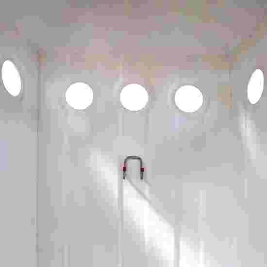 The classic Roman-style Sport-Thieme “Le Cabine” changing cabin can be used anywhere. It is made from high-quality, glass-fibre-reinforced polyester resin and has a polished surface. Its interior is bright white and very inviting. For optimal privacy, the curtain is made from tearproof saran material (100% polychloride), which is attached to the Sport-Thieme “Le Cabine” changing cabin via hooks. Integrated openings on the walls of the cabin ensure good air circulation.