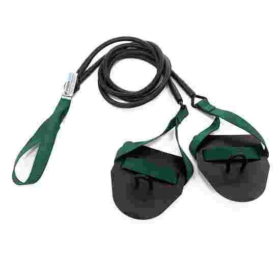StrechCordz consist of a hard-wearing latex tube and hand paddles. The pull cord is securely attached to the plastic parts. The highly elasticated latex pull cords do not increase the resistance too much during the pulling action. The progression of force is therefore ideally adapted for swimming.