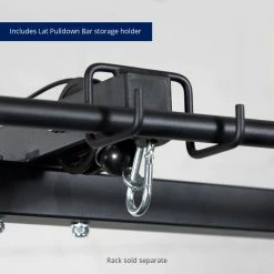 Turn your T-2 Series Power Rack into a powerful Lat Tower with the Lat Tower Attachment. This space savings pulley system is designed to deliver the same training benefits of a traditional Lat Pulldown Machine with the perk of a Low Row attachment to target your arms and back β building your biceps, rhomboids, and trapezius muscles altogether. Both Lat Pulldown and Low Row handles are included with our Lat Tower Attachment, but weight plates must be purchased separately. The bolt-together installation ensures this attachment is securely fitted within your T-2 Series Power Rack. If you want to make your garage gym bigger, bolder, and badder β look no further than this powerful lat tower attachment.