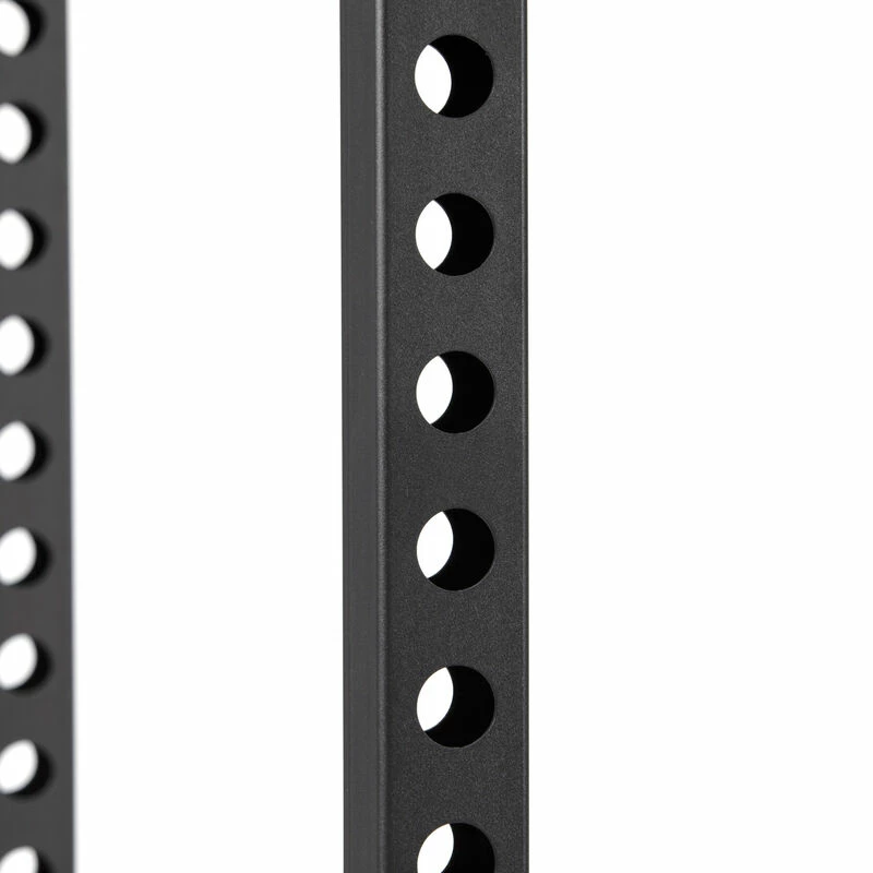 The T-2 Series Power Rack is offered in 71 and 83-inch models to fit your gym needs. Featuring heavy-duty 2 x 2-inch 12-gauge square steel uprights with laser-cut holes spaced 2-inches on center throughout the front and back of the uprights and side bracings, a bolt-together design, and a powder-coated black finish. Additionally, the power rack comes equipped with weight plate horns, pin/pipe safeties, reinforced J-Hooks, and a single pull-up bar. Take your workouts even further and add more variety by taking advantage of our power rack accessories, such as: Strap Safeties, Rack Mounted Lat Tower, and more.