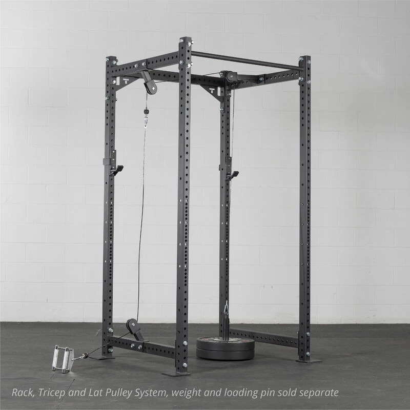 The Low Pulley Add-On by Titan Fitness® is a bolt-on pulley attachment designed to create a dynamic pulley system on your Short or Tall T-3 Series Power Rack. This system mounts to the bottom crossmember in conjunction with your T-3 Series Tricep and Lat Pulley System. It features one rack-mounted pulley attachment, 80-inch cable, one carabiner, and all the assembly hardware needed. This add-on can hold a weight capacity of 440-pounds and allows you to perform various exercises such as bicep curls, seated rows, leg extensions, and other exercises.