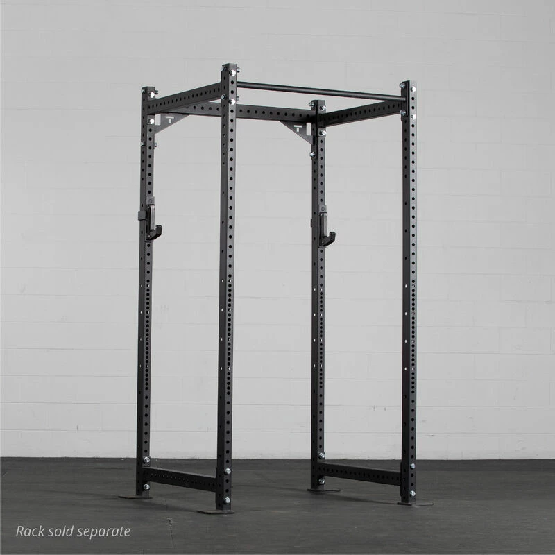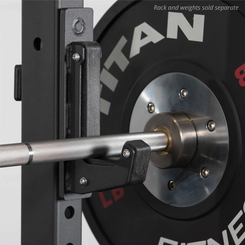 The T-3 Series Sandwich J-Hooks by Titan Fitness® are designed with a J-hook style mounting system that allows you to install the hooks to your rack within seconds. Easily clip the mounting system into the uprights by inserting the pin and rotating the hooks down. No hardware required. The two 1.375-inch-wide hooks can hold up to a combined 1,800-pounds and feature 1-inches of UHMW plastic core sandwiched between two thick steel plates with 0.375-inch of UMHW exposed to protect and preserve your bar’s finish and knurling. Elevate your workouts and general safety with the T-3 Series Sandwich J-Hooks!
